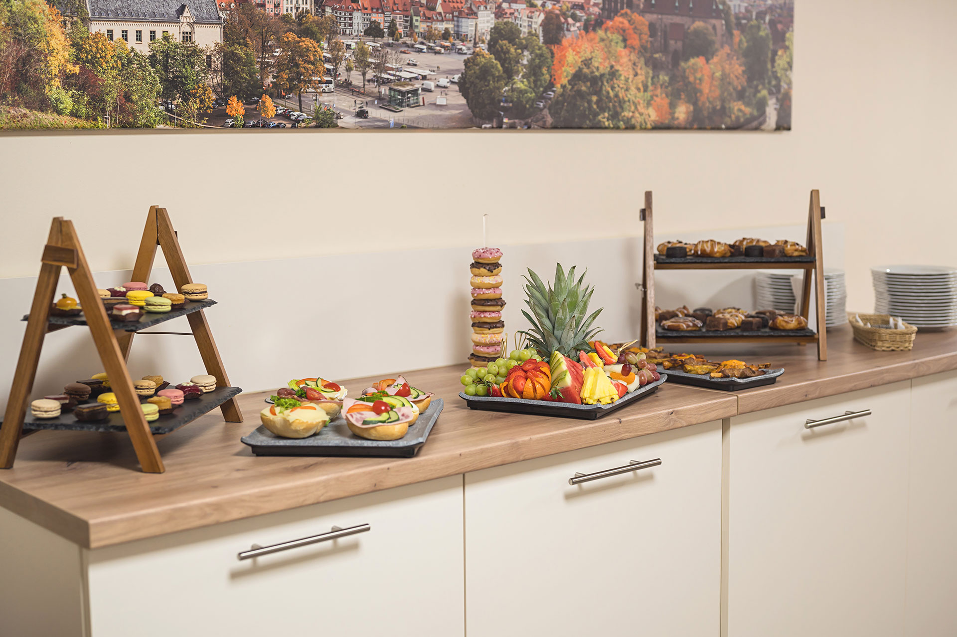 Essen ist ein Bedürfnis. Genießen ist eine Kunst. Werden Sie zum Künstler, denn wir bewirten Sie mit abwechslungsreichen, regionalen und saisonalen Köstlichkeiten, die Ihr Genießer Herz höherschlagen lassen. Ob vitalisierende Salate, herzhafte Thüringer Rouladen oder verführerisches Gebäck, unser breites Speisen-Angebot wird Ihnen Kraft für kreative Gedanken geben und Sie den Alltagstress vergessen lassen. Wir bieten Ihnen Verpflegungspakete in drei Stufen an, wodurch für jeden Geschmack und jedes Budget etwas dabei ist. Transparent und fair kalkulieren wir Ihnen Ihre Verpflegungswünsche.
