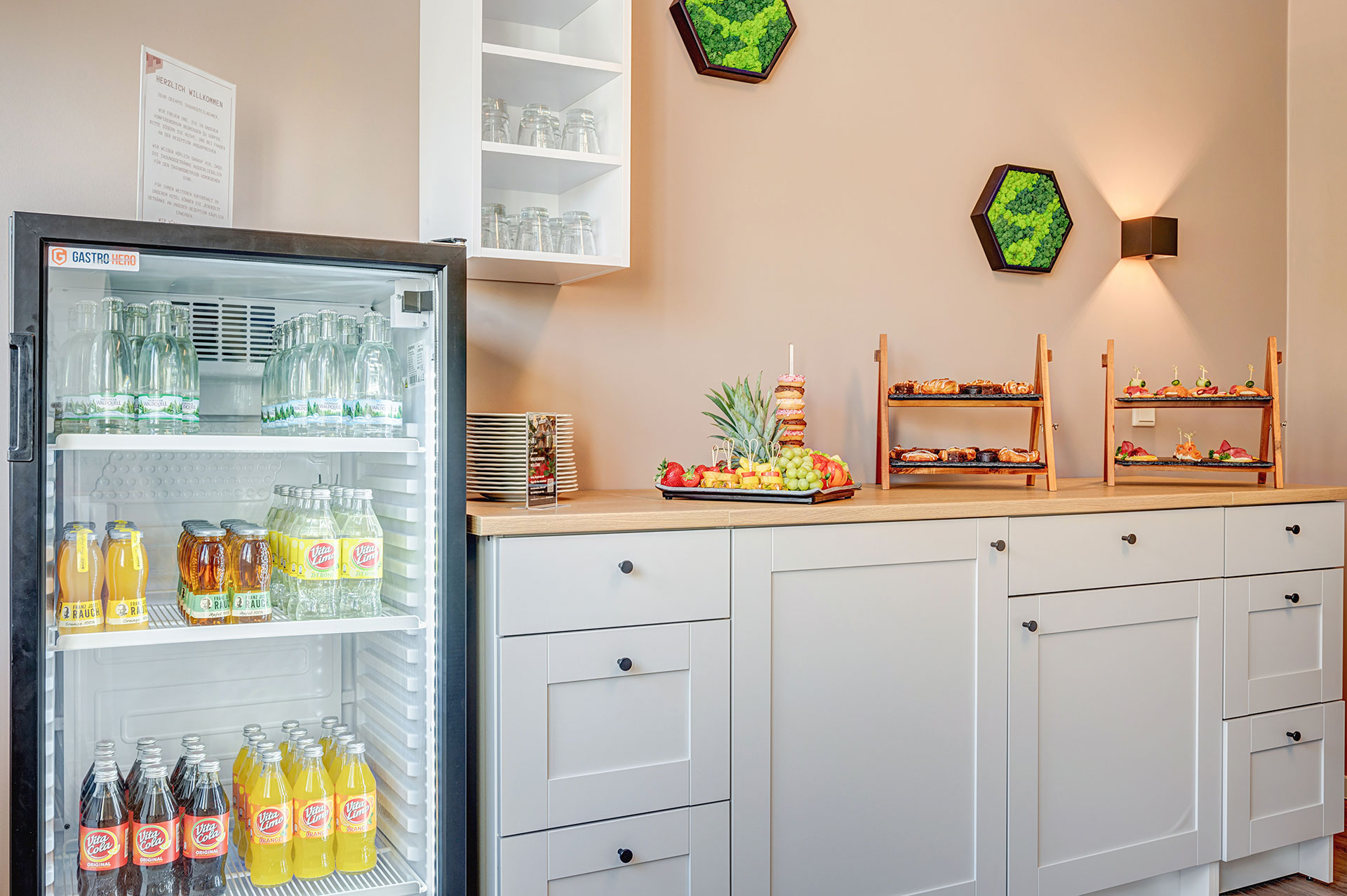 - Kaffee- und Teespezialitäten sowie Apfelsaft und Wasser